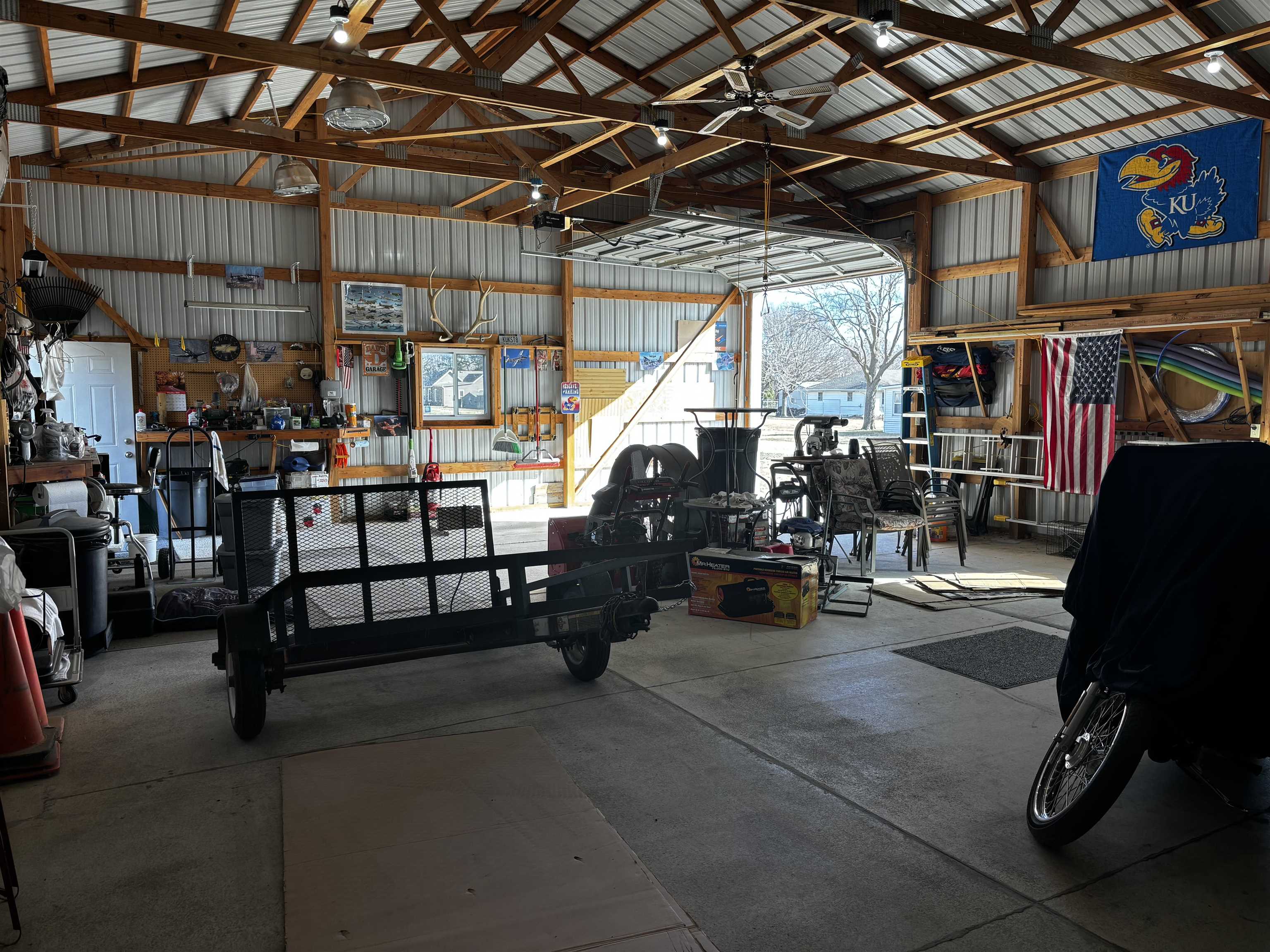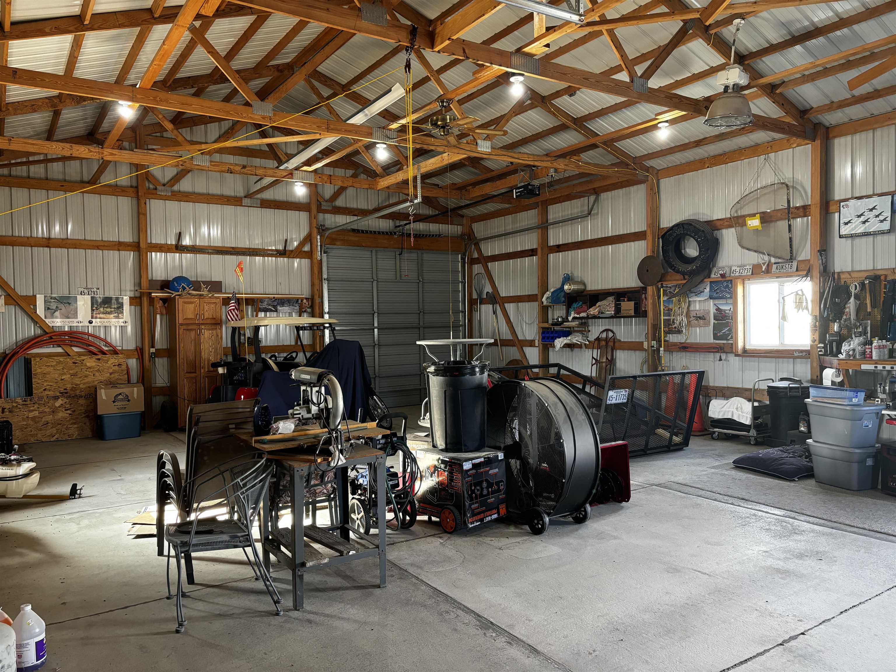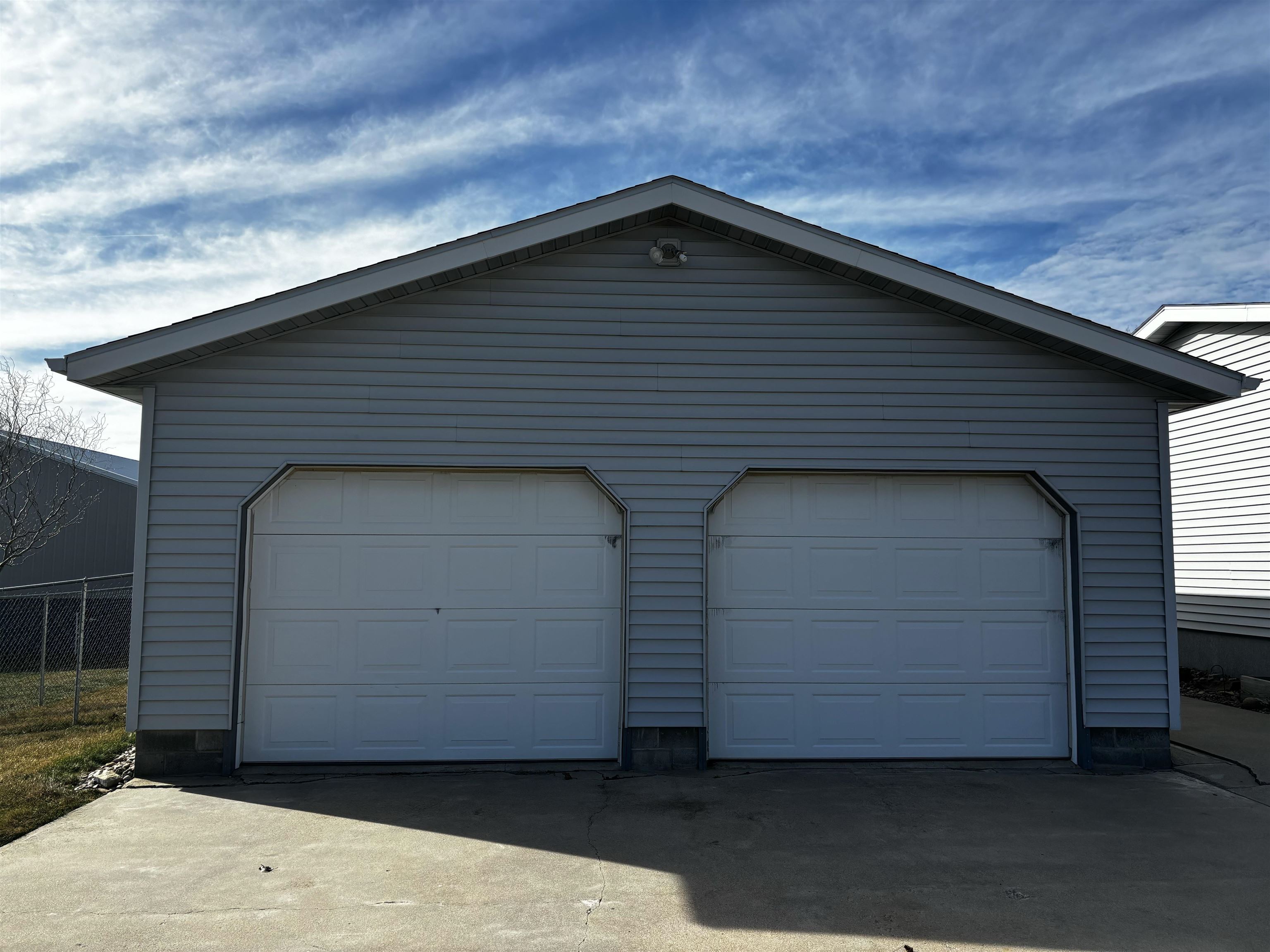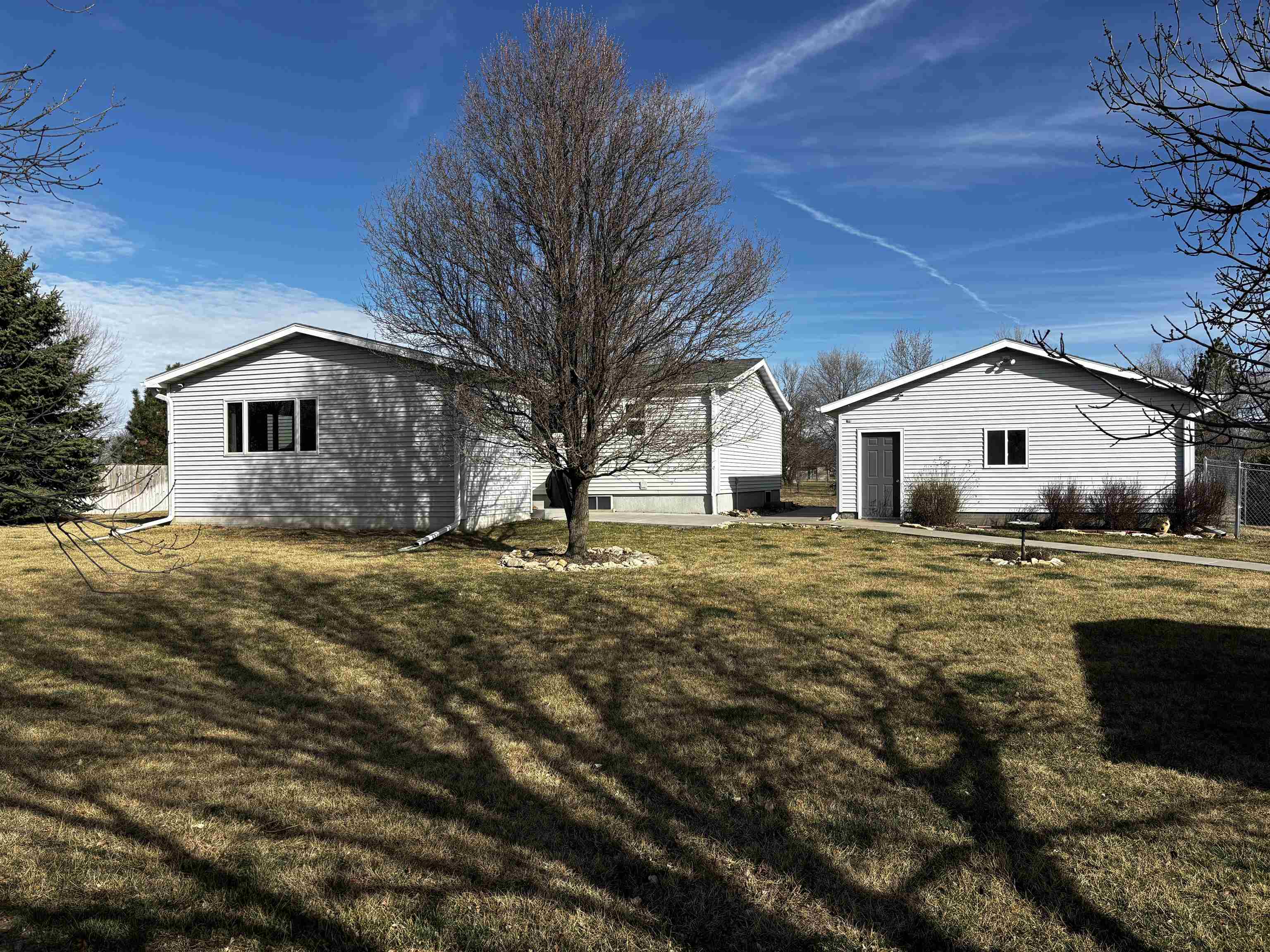 This well-maintained property has been thoughtfully updated and expanded over the years, offering both comfort and functionality! The main floor features a dining room that is open to the kitchen, creating a bright and inviting living space. The custom kitchen (2011) includes solid oak cabinetry, soft-close drawers, and durable laminate tile flooring. Just off the kitchen is a walk-in laundry room on the main level. The custom primary bathroom was completed in 2019. That same year, the home was expanded with a 24x22 great room addition, including a mudroom entrance, new patio, heat pump, and Pella windows and doors. Updates also include a new furnace and air conditioner (2016) and an upgraded water softening system (2017). The basement, finished in 2005, includes two non-conforming bedrooms, an additional bathroom, and two storage rooms. Exterior updates include a detached 2-car garage with breezeway, built after the original construction, a 30x40 shop building with two overhead doors (2015), a composite front deck (2017), new vinyl windows (2020), a newer roof, updated siding on the home and garage, a storage shed, and a back patio, as well as an underground sprinkler system installed within the last five years. Located near the school and the new city pool, this home offers a convenient and desirable setting. The shop building is on a separate parcel. Both parcels are being sold together.