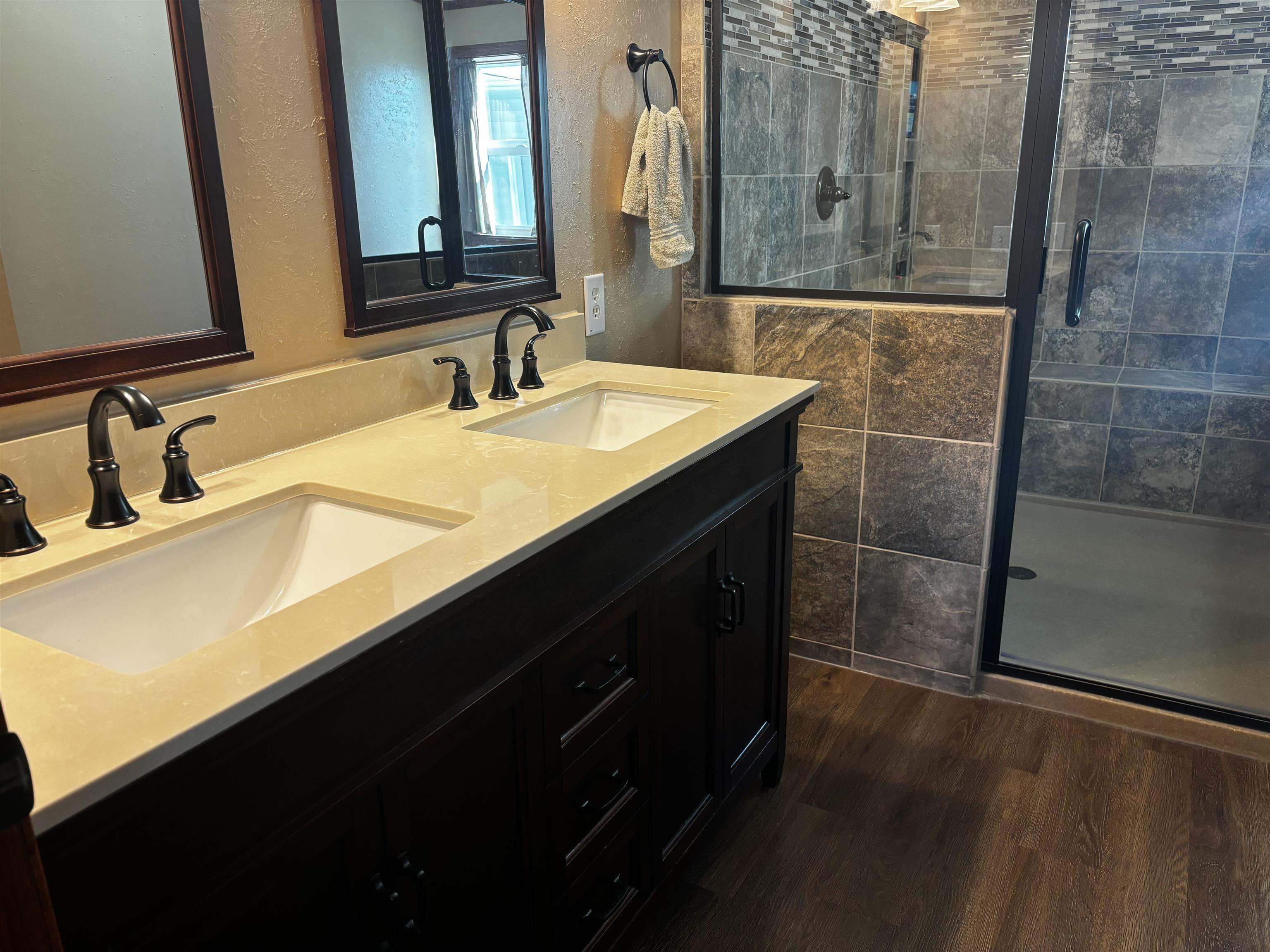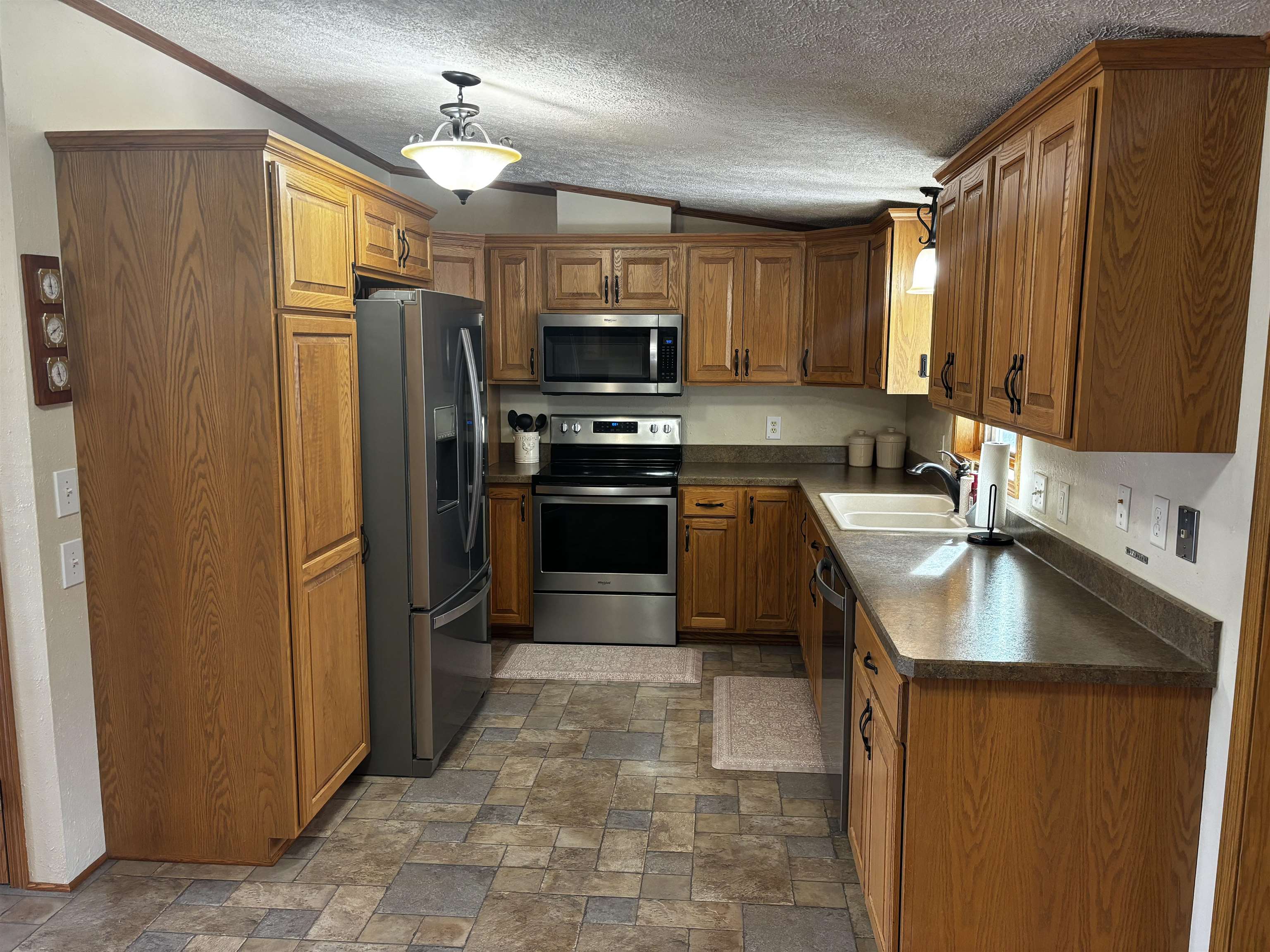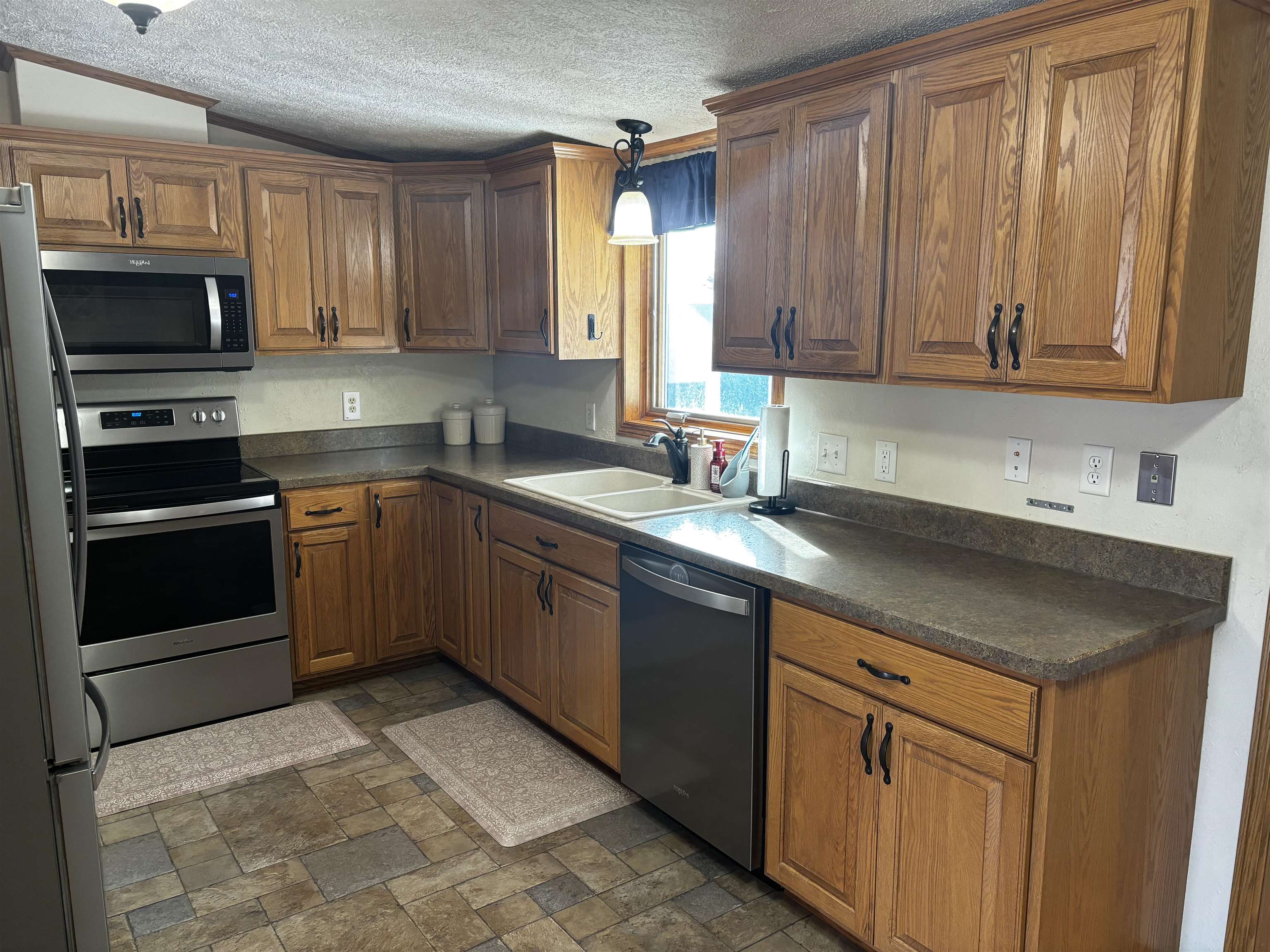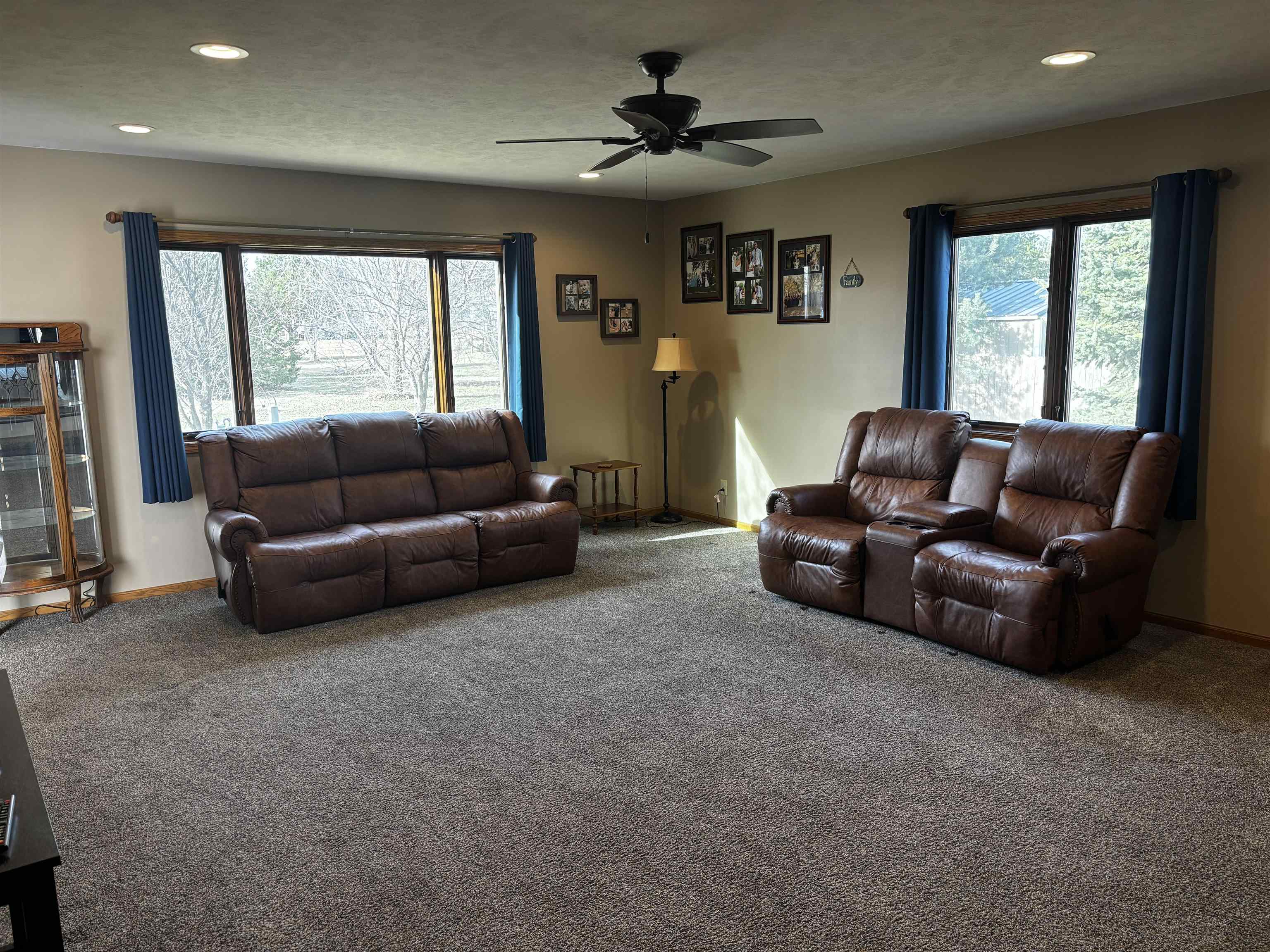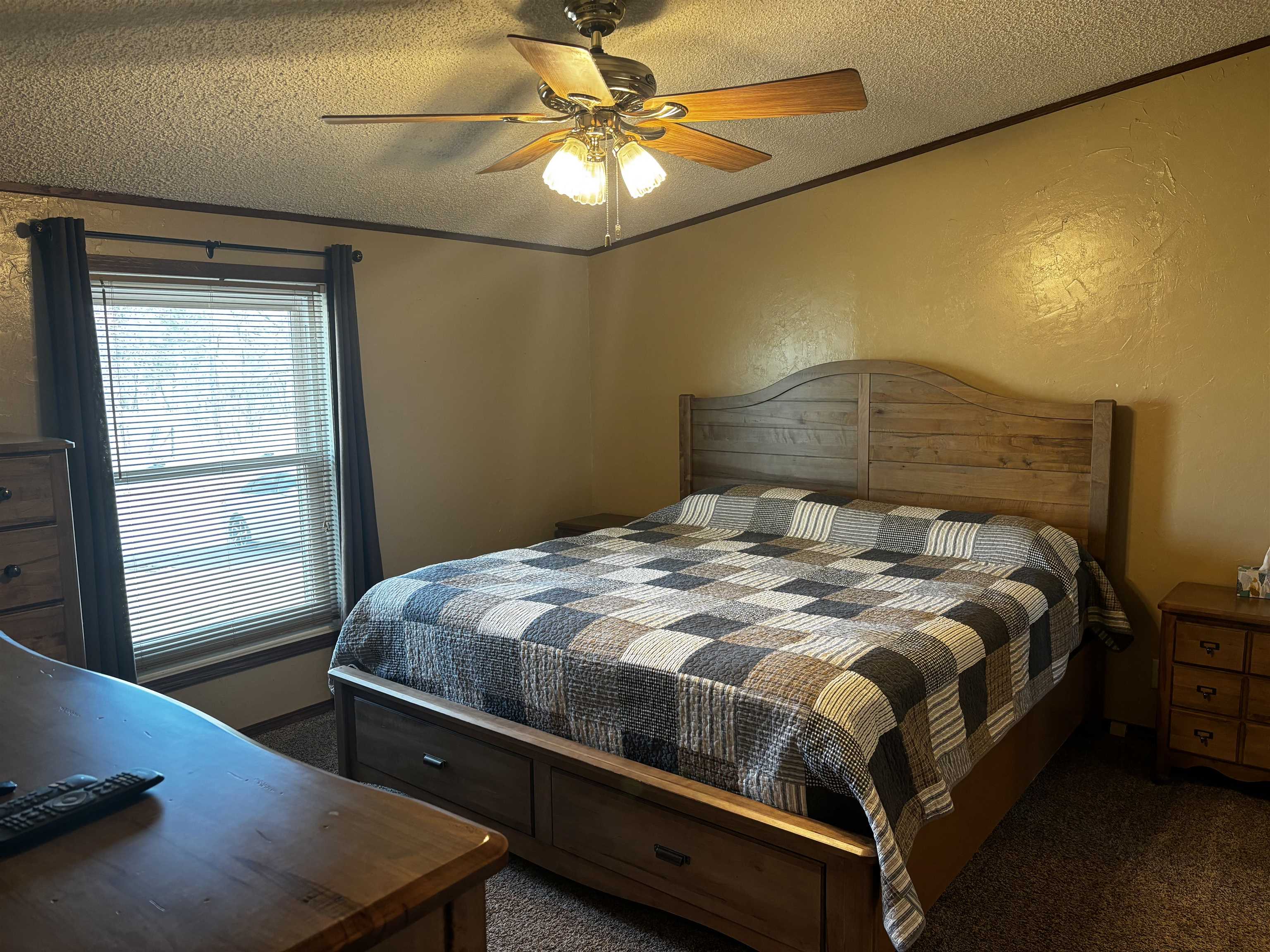 This well-maintained property has been thoughtfully updated and expanded over the years, offering both comfort and functionality! The main floor features a dining room that is open to the kitchen, creating a bright and inviting living space. The custom kitchen (2011) includes solid oak cabinetry, soft-close drawers, and durable laminate tile flooring. Just off the kitchen is a walk-in laundry room on the main level. The custom primary bathroom was completed in 2019. That same year, the home was expanded with a 24x22 great room addition, including a mudroom entrance, new patio, heat pump, and Pella windows and doors. Updates also include a new furnace and air conditioner (2016) and an upgraded water softening system (2017). The basement, finished in 2005, includes two non-conforming bedrooms, an additional bathroom, and two storage rooms. Exterior updates include a detached 2-car garage with breezeway, built after the original construction, a 30x40 shop building with two overhead doors (2015), a composite front deck (2017), new vinyl windows (2020), a newer roof, updated siding on the home and garage, a storage shed, and a back patio, as well as an underground sprinkler system installed within the last five years. Located near the school and the new city pool, this home offers a convenient and desirable setting. The shop building is on a separate parcel. Both parcels are being sold together.